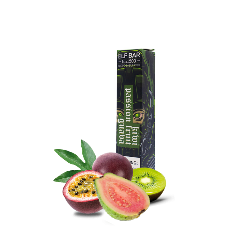 - Ресурс до 1500 затяжок. Однією електронною сигаретою вистачає надовго. Elf Bar LUX 1500 Kiwi Passion Fruit Guava (Ківі Маракуя Гуава) Одноразовий POD забезпечує стабільну подачу пари до 1500 затяжок — цього більш ніж достатньо на кілька днів активного використання, а часом і на тиждень.