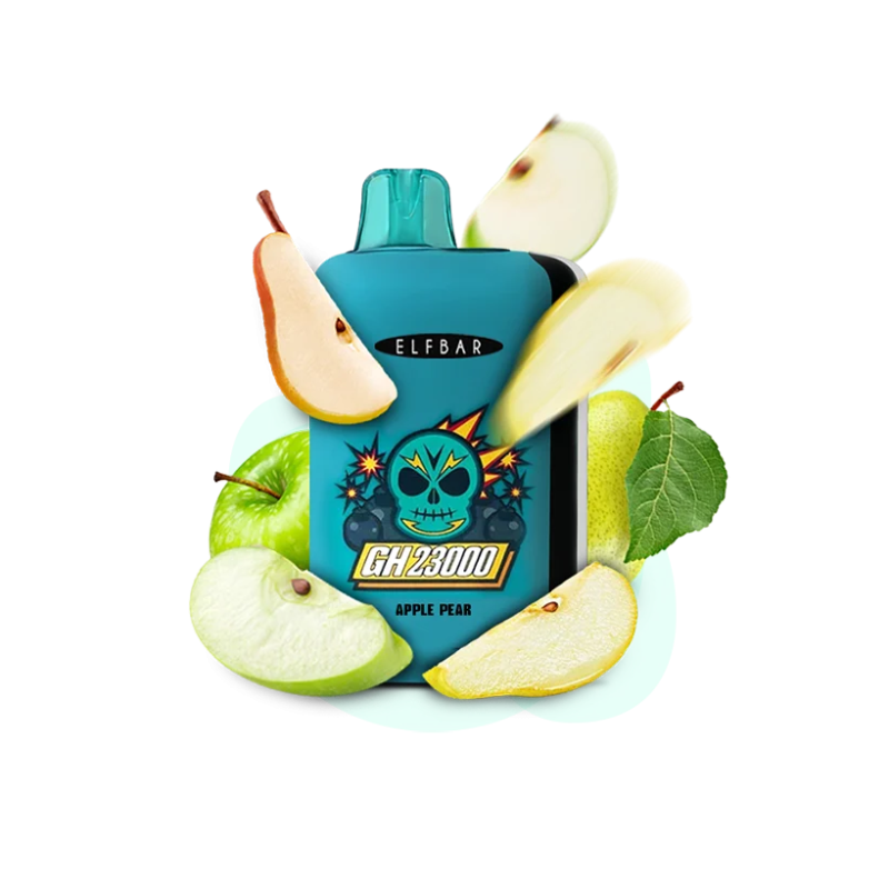 - Ресурс до 23000 затяжок. Однією електронною сигаретою вистачає надовго. Elf Bar GH 23000 Apple Pear (Яблуко Груша) Одноразовий POD забезпечує стабільну подачу пари до 23000 затяжок — цього більш ніж достатньо на кілька днів активного використання, а часом і на тиждень.