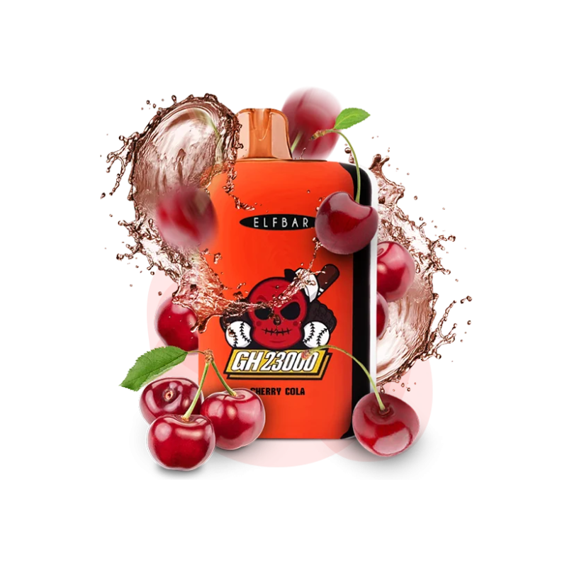- Ресурс до 23000 затяжок. Однією електронною сигаретою вистачає надовго. Elf Bar GH 23000 Cherry Cola (Вишнева кола) Одноразовий POD забезпечує стабільну подачу пари до 23000 затяжок — цього більш ніж достатньо на кілька днів активного використання, а часом і на тиждень.