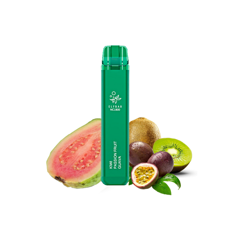 - Ресурс до 1800 затяжок. Однією електронною сигаретою вистачає надовго. Elf Bar NC1800 Kiwi Passion fruit Guava (Ківі Маракуя Гуава) Одноразовий POD забезпечує стабільну подачу пари до 1800 затяжок — цього більш ніж достатньо на кілька днів активного використання, а часом і на тиждень.