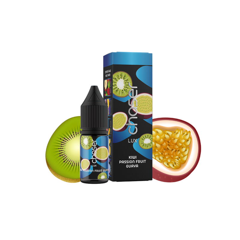 Рідина Chaser Lux Kiwi Passion Fruit Guava (Ківі Маракуя Гуава, 50 мг, 11 мл) надає вейперам унікальні смакові відчуття. Ця жижа ідеально підходить для багаторазових вейпів завдяки своїй оптимальній густоті, безпечному складу та приємному аромату, відкриваючи нові грані смаку.