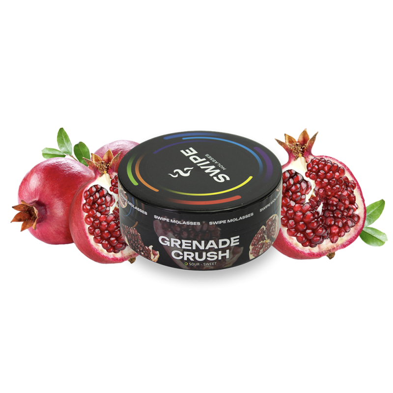 Найпопулярнішим серед поціновувачів димного відпочинку є Кальянна суміш Swipe Grenade crush (Гренаді краш, 100 г) від Swipe. Основа кальянної заправки — це тютюновий лист Органічна фруктова клітковина високої якості, а також натуральні ароматизатори, патока та чистий гліцерин. Завдяки цьому тютюн має насичений смак Гранат, приємний аромат і здатний утворювати густий дим.