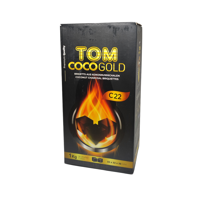 Кокосове вугілля для кальяну Tom Cococha Gold (1 кг, 96 шт., маленький кубик) від Tom cococha зарекомендував себе як високоякісний продукт, що має низку важливих властивостей: