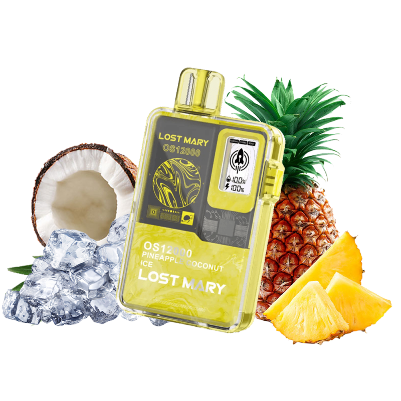 - Ресурс до 12000 затяжок. Однією електронною сигаретою вистачає надовго. Lost Mary OS12000 Pineapple Coconut Ice (Ананас Кокос Лід) Одноразовий POD забезпечує стабільну подачу пари до 12000 затяжок — цього більш ніж достатньо на кілька днів активного використання, а часом і на тиждень.