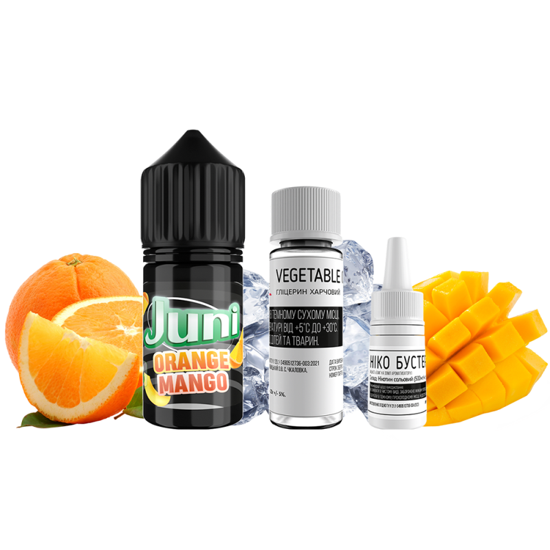 Набір для самозамішування Juni Silver Ice Orange Mango (Апельсин Манго Лід, 50 мг, 30 мл) надає вейперам унікальні смакові відчуття. Ця жижа ідеально підходить для багаторазових вейпів завдяки своїй оптимальній густоті, безпечному складу та приємному аромату, відкриваючи нові грані смаку.