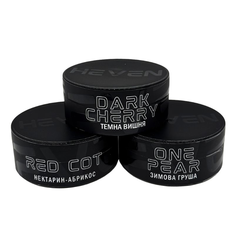 У набір входять: Тютюн Heven One Pear (Груша, 100 г) Тютюн Heven Red Cot (Нектарін Абрикос, 100 г) Тютюн Heven Dark Cherry (Темна Вишня, 100 г)