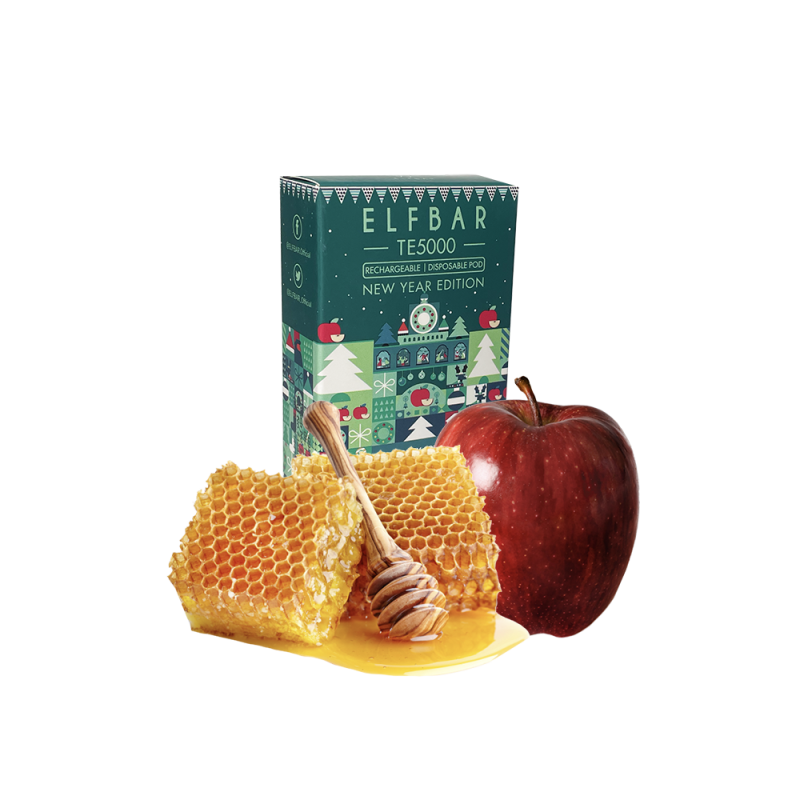 - Ресурс до 5000 затяжек. Одной электронной сигареты хватает надолго. Elf Bar Christmas Edition TE5000 Honey Apple (Медовое Яблоко) Одноразовый POD обеспечивает стабильную подачу пара до 5000 затяжек — этого более чем достаточно на несколько дней активного использования, а порой и на неделю.
