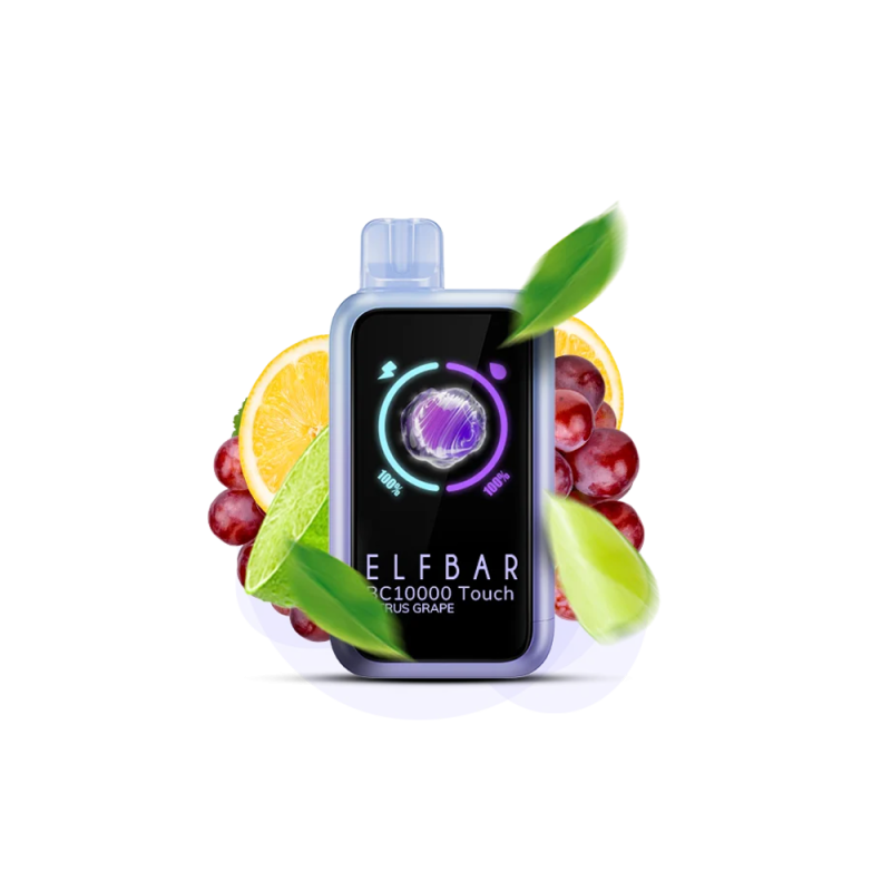 - Ресурс до 10000 затяжек. Одной электронной сигареты хватает надолго. Elf Bar BC10000 Touch Citrus Grape (Цитрус Виноград) Одноразовый POD обеспечивает стабильную подачу пара до 10000 затяжек — этого более чем достаточно на несколько дней активного использования, а порой и на неделю.