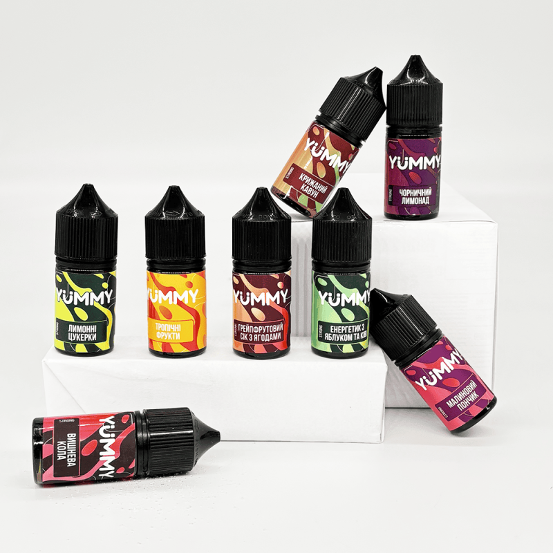 Жижа от YUMMY состоит из натуральных компонентов, которые минимально влияют на здоровье пользователя: