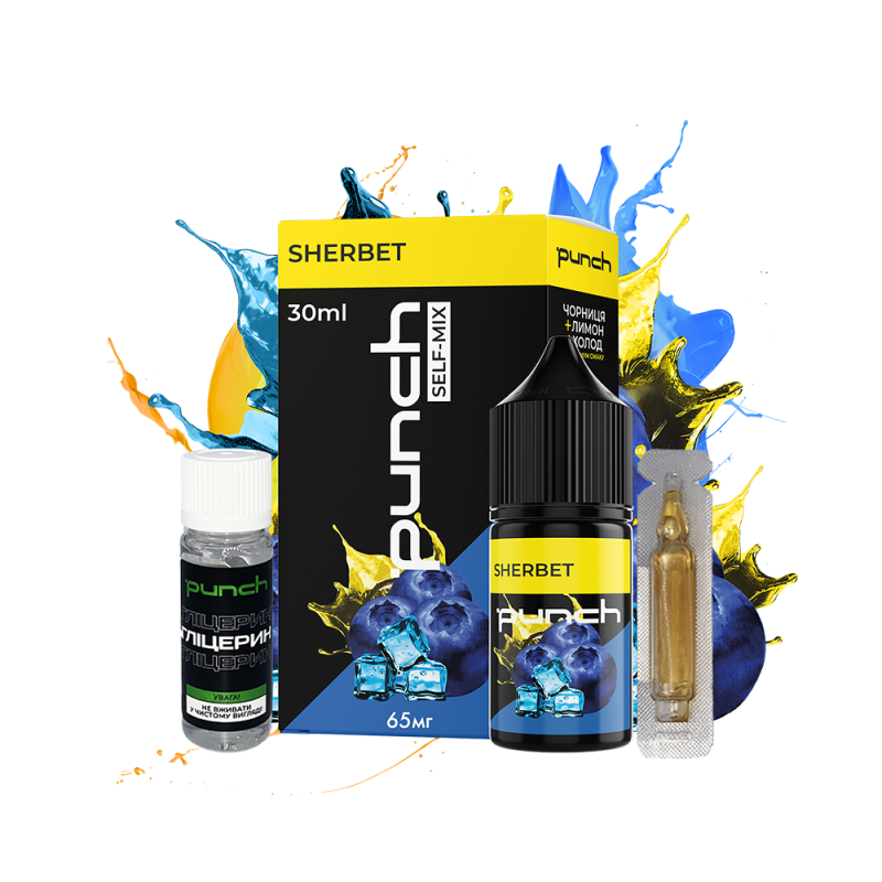 Набор для самозамеса Punch Sherbet (Лимон Черника Холод, 65 мг, 30 мл) предоставляет вейперам уникальные вкусовые ощущения. Эта жижка идеально подходит для многоразовых вейпов благодаря своей оптимальной густоте, безопасному составу и приятному аромату, открывая новые грани вкуса.