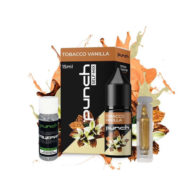 Набор для самозамеса Punch Tobacco vanilla (Ваниль Табак, 50 мг, 15 мл) предоставляет вейперам уникальные вкусовые ощущения. Эта жижка идеально подходит для многоразовых вейпов благодаря своей оптимальной густоте, безопасному составу и приятному аромату, открывая новые грани вкуса.