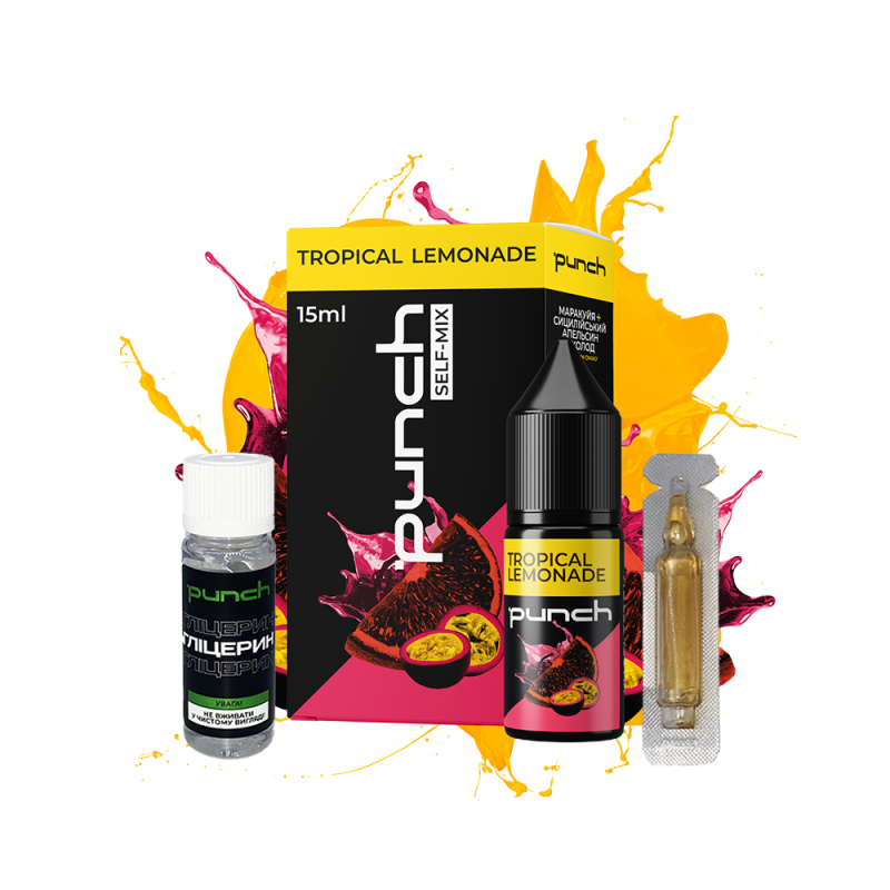 Набор для самозамеса Punch Tropical Lemonade (Апельсин Маракуйя Холод, 50 мг, 15 мл) предоставляет вейперам уникальные вкусовые ощущения. Эта жижка идеально подходит для многоразовых вейпов благодаря своей оптимальной густоте, безопасному составу и приятному аромату, открывая новые грани вкуса.
