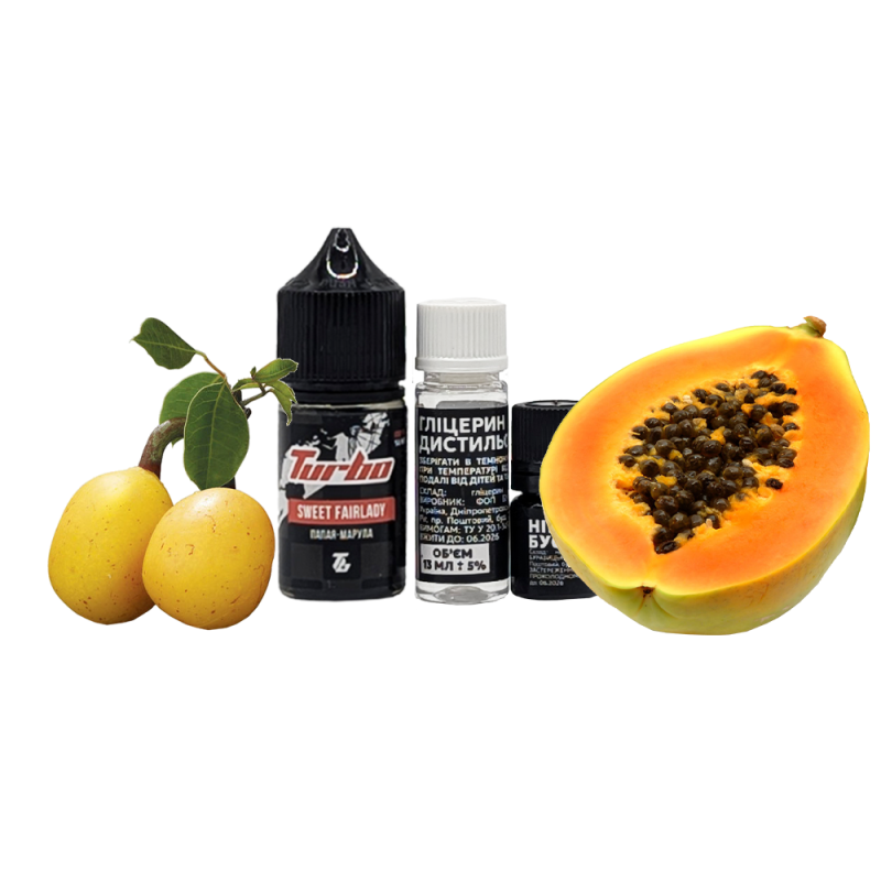 Набор для самозамеса Turbo Sweet Fairlady (Папайя-Марула, 50 мг, 30 мл) предоставляет вейперам уникальные вкусовые ощущения. Эта жижка идеально подходит для многоразовых вейпов благодаря своей оптимальной густоте, безопасному составу и приятному аромату, открывая новые грани вкуса.