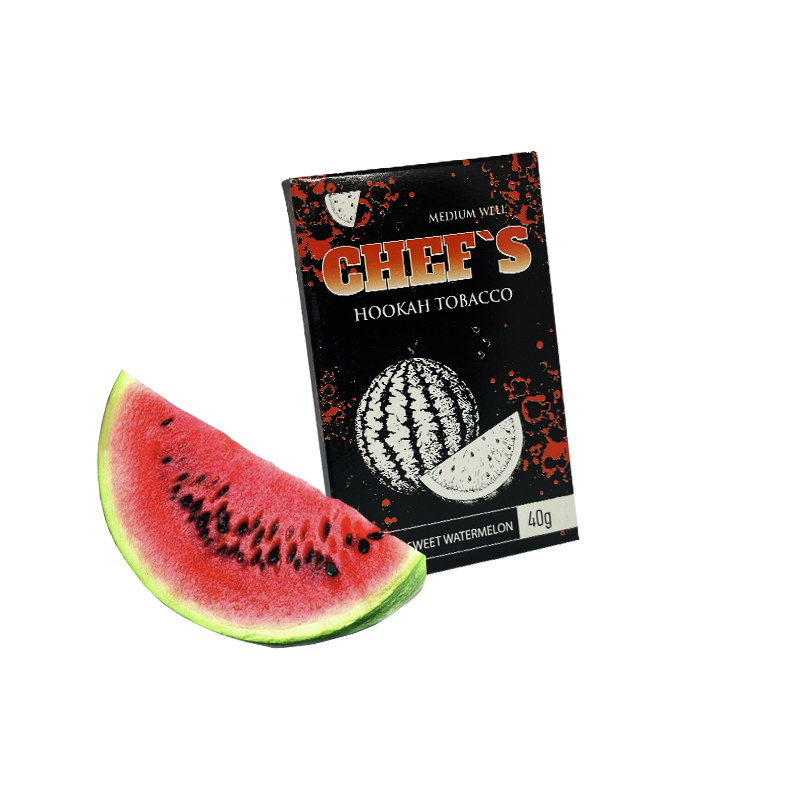 Наиболее популярным среди ценителей дымного отдыха является Табак Chefs Sweet Watermelon (Сладкий Арбуз, 40 г) от Chefs. Основа кальянной заправки — это табачный лист Virginia, Burley высокого качества, а также натуральные ароматизаторы, патока и чистый глицерин. Благодаря этому табак обладает насыщенным вкусом Арбуз, приятным ароматом и способен образовывать густой дым.