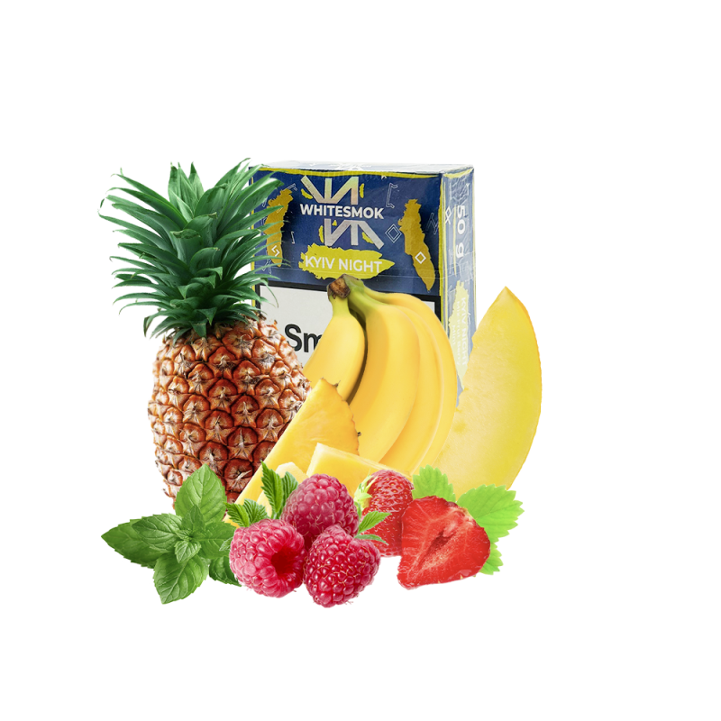 Наиболее популярным среди ценителей дымного отдыха является Табак WhiteSmok Kyiv Night (Киев Найт, 50 г) от WhiteSmok. Основа кальянной заправки — это табачный лист Virginia высокого качества, а также натуральные ароматизаторы, патока и чистый глицерин. Благодаря этому табак обладает насыщенным вкусом Ананас, Банан, Дыня, Клубника, Малина, Мята, Персик, приятным ароматом и способен образовывать густой дым.