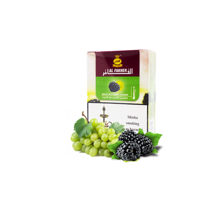 Найпопулярнішим серед поціновувачів димного відпочинку є Тютюн Al Fakher Grape with Berry (Ягода Виноград, 50 г) від Al Fakher. Основа кальянної заправки — це тютюновий лист Virginia високої якості, а також натуральні ароматизатори, патока та чистий гліцерин. Завдяки цьому тютюн має насичений смак Виноград, Ягоди, приємний аромат і здатний утворювати густий дим.
