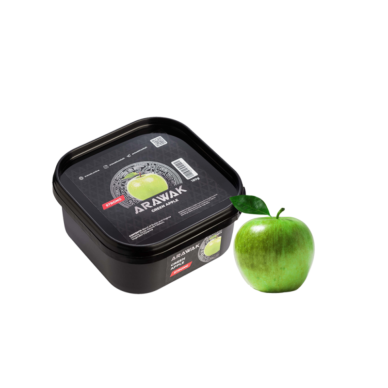 Найпопулярнішим серед поціновувачів димного відпочинку є Тютюн Arawak Strong Зелене Яблуко (180 г) від Arawak. Основа кальянної заправки — це тютюновий лист Virginia, Burley високої якості, а також натуральні ароматизатори, патока та чистий гліцерин. Завдяки цьому тютюн має насичений смак Яблуко, приємний аромат і здатний утворювати густий дим.