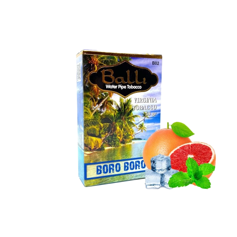 Найпопулярнішим серед поціновувачів димного відпочинку є Тютюн Balli Boro Boro (Боро Боро, 50 г) від Balli. Основа кальянної заправки — це тютюновий лист Virginia високої якості, а також натуральні ароматизатори, патока та чистий гліцерин. Завдяки цьому тютюн має насичений смак Грейпфрут, Льод/Холодок, М'ята, приємний аромат і здатний утворювати густий дим.