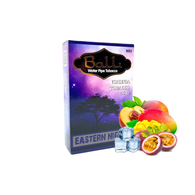Найпопулярнішим серед поціновувачів димного відпочинку є Тютюн Balli Eastern Night (Істерн Найт, 50 г) від Balli. Основа кальянної заправки — це тютюновий лист Virginia високої якості, а також натуральні ароматизатори, патока та чистий гліцерин. Завдяки цьому тютюн має насичений смак Лід/Холодок, Манго, Маракуя, Персик, приємний аромат і здатний утворювати густий дим.