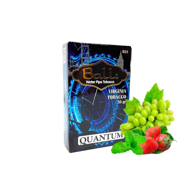 Найпопулярнішим серед поціновувачів димного відпочинку є Тютюн Balli Quantum (Квантум, 50 г) від Balli. Основа кальянної заправки — це тютюновий лист Virginia високої якості, а також натуральні ароматизатори, патока та чистий гліцерин. Завдяки цьому тютюн має насичений смак Виноград, Полуниця, М'ята, приємний аромат і здатний утворювати густий дим.