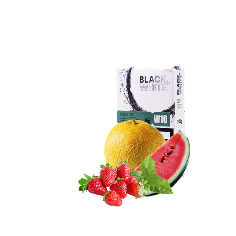 Найпопулярнішим серед поціновувачів димного відпочинку є Тютюн Black&White W10 Qudditch (кавун диня м'ята полуниця, 40 г) від Black&White. Основа кальянної заправки — це тютюновий лист Virginia високої якості, а також натуральні ароматизатори, патока та чистий гліцерин. Завдяки цьому тютюн має насичений смак Кавун, Диня, Полуниця, М'ята, приємний аромат і здатний утворювати густий дим.