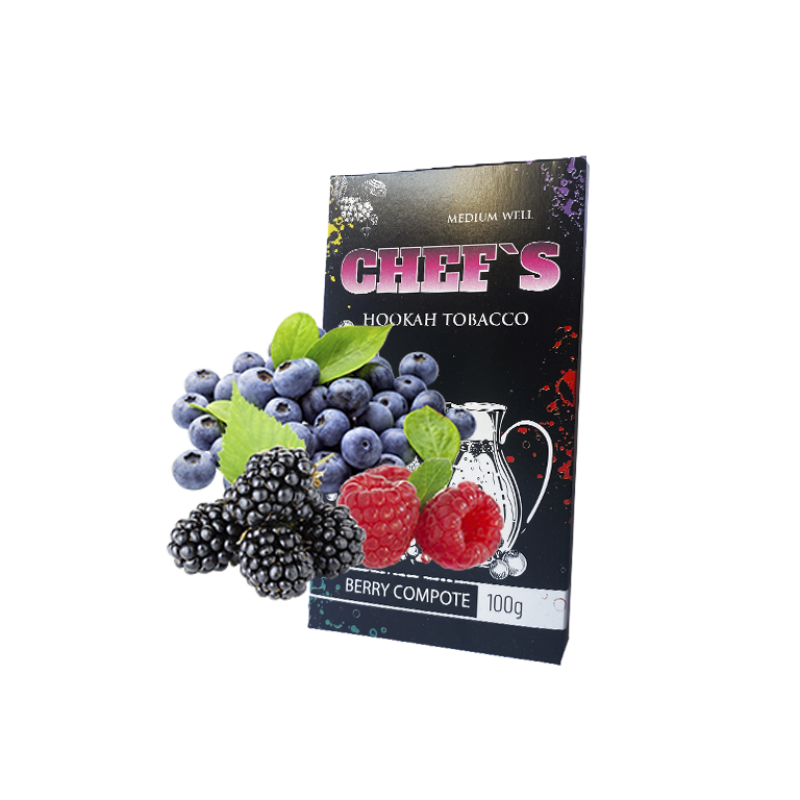 Найпопулярнішим серед поціновувачів димного відпочинку є Тютюн Chefs Berry Compote (Ягідний компот, 100 г) від Chefs. Основа кальянної заправки — це тютюновий лист Virginia, Burley високої якості, а також натуральні ароматизатори, патока та чистий гліцерин. Завдяки цьому тютюн має насичений смак Ягоди, приємний аромат і здатний утворювати густий дим.