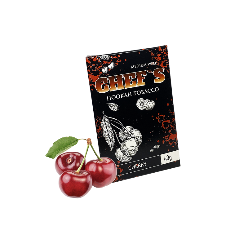 Найпопулярнішим серед поціновувачів димного відпочинку є Тютюн Chefs Cherry (Вишня, 40 г) від Chefs. Основа кальянної заправки — це тютюновий лист Virginia, Burley високої якості, а також натуральні ароматизатори, патока та чистий гліцерин. Завдяки цьому тютюн має насичений смак Вишня Черешня, приємний аромат і здатний утворювати густий дим.