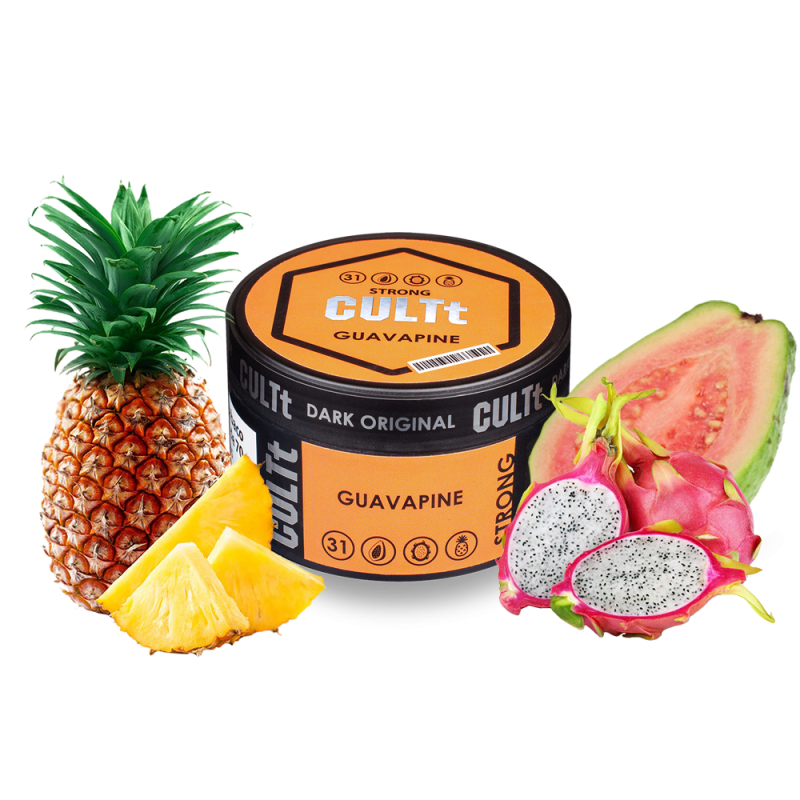 Найпопулярнішим серед поціновувачів димного відпочинку є Тютюн CULTt Strong DS31 Guavapine (Гуава Пітайя Ананас, 100 г) від CULTt. Основа кальянної заправки — це тютюновий лист Virginia, Burley високої якості, а також натуральні ароматизатори, патока та чистий гліцерин. Завдяки цьому тютюн має насичений смак Ананас, Гуава, Пітайя/Драконій фрукт., приємний аромат і здатний утворювати густий дим.
