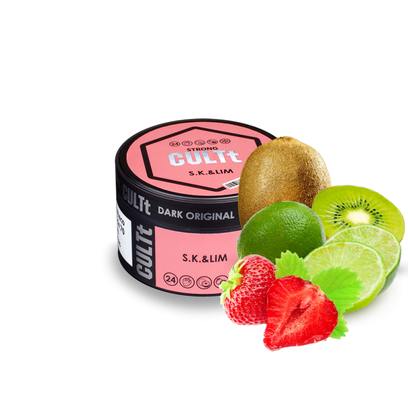 Найпопулярнішим серед поціновувачів димного відпочинку є Тютюн CULTt Strong DS24 S.K.&Lim (Полуниця Ківі Лайм Лід, 100 г) від CULTt. Основа кальянної заправки — це тютюновий лист Virginia, Burley високої якості, а також натуральні ароматизатори, патока та чистий гліцерин. Завдяки цьому тютюн має насичений смак Ківі, Полуниця, Лайм, приємний аромат і здатний утворювати густий дим.