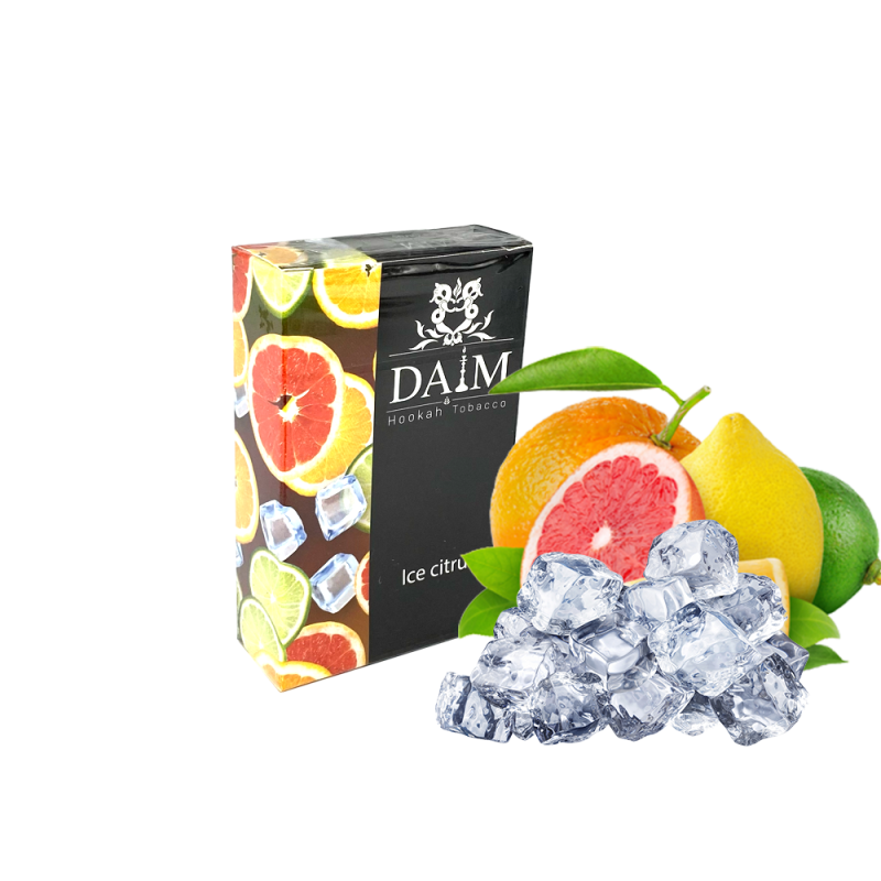Найпопулярнішим серед поціновувачів димного відпочинку є Тютюн DAIM Ice Citrus (Цитрус Лід, 50 г) від DAIM. Основа кальянної заправки — це тютюновий лист Virginia високої якості, а також натуральні ароматизатори, патока та чистий гліцерин. Завдяки цьому тютюн має насичений смак Апельсин, Лайм, Лід/Холодок, Лимон, приємний аромат і здатний утворювати густий дим.