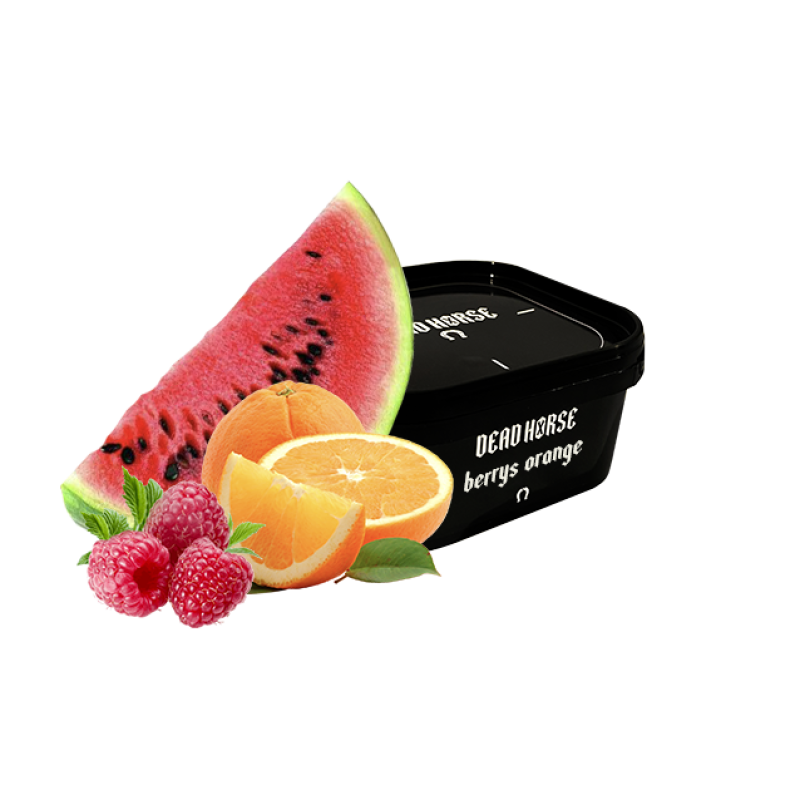 Найпопулярнішим серед поціновувачів димного відпочинку є Тютюн Dead Horse Berrys Orange (Кавун Малина Апельсин, 200 г) від Dead Horse. Основа кальянної заправки — це тютюновий лист Burley високої якості, а також натуральні ароматизатори, патока та чистий гліцерин. Завдяки цьому тютюн має насичений смак Апельсин, Кавун, Малина, приємний аромат і здатний утворювати густий дим.