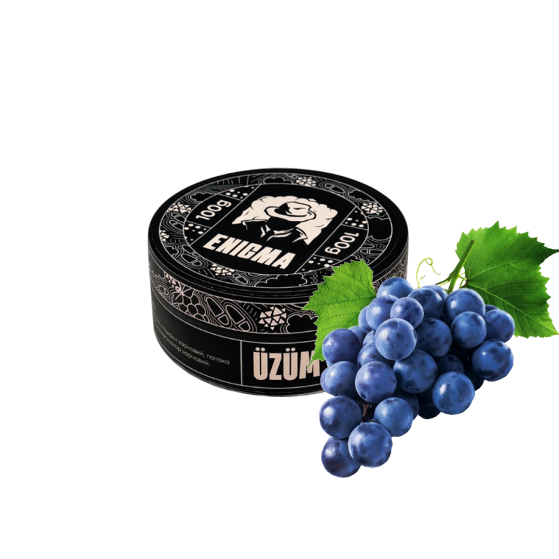 Найпопулярнішим серед поціновувачів димного відпочинку є Тютюн Enigma Üzüm (Виноград, 100 г) від Enigma. Основа кальянної заправки — це тютюновий лист Burley високої якості, а також натуральні ароматизатори, патока та чистий гліцерин. Завдяки цьому тютюн має насичений смак Виноград, приємний аромат і здатний утворювати густий дим.