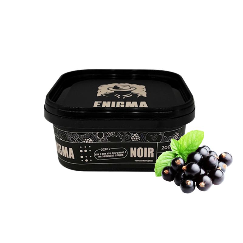 Найпопулярнішим серед поціновувачів димного відпочинку є Тютюн Enigma Noir (Чорна Смородина, 200 г) від Enigma. Основа кальянної заправки — це тютюновий лист Burley високої якості, а також натуральні ароматизатори, патока та чистий гліцерин. Завдяки цьому тютюн має насичений смак Смородина, приємний аромат і здатний утворювати густий дим.