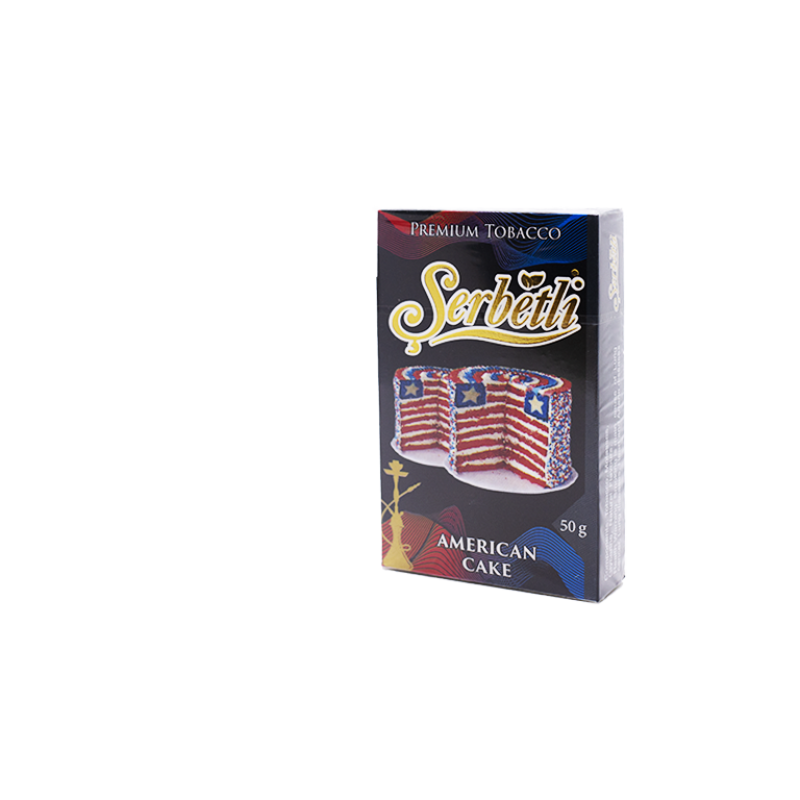 Найпопулярнішим серед поціновувачів димного відпочинку є Тютюн Serbetli American Cake (Американський Пиріг, 50 г) від Serbetli. Основа кальянної заправки — це тютюновий лист Virginia високої якості, а також натуральні ароматизатори, патока та чистий гліцерин. Завдяки цьому тютюн має насичений смак Карамель, Кава, Пиріг/Кондитерка, приємний аромат і здатний утворювати густий дим.