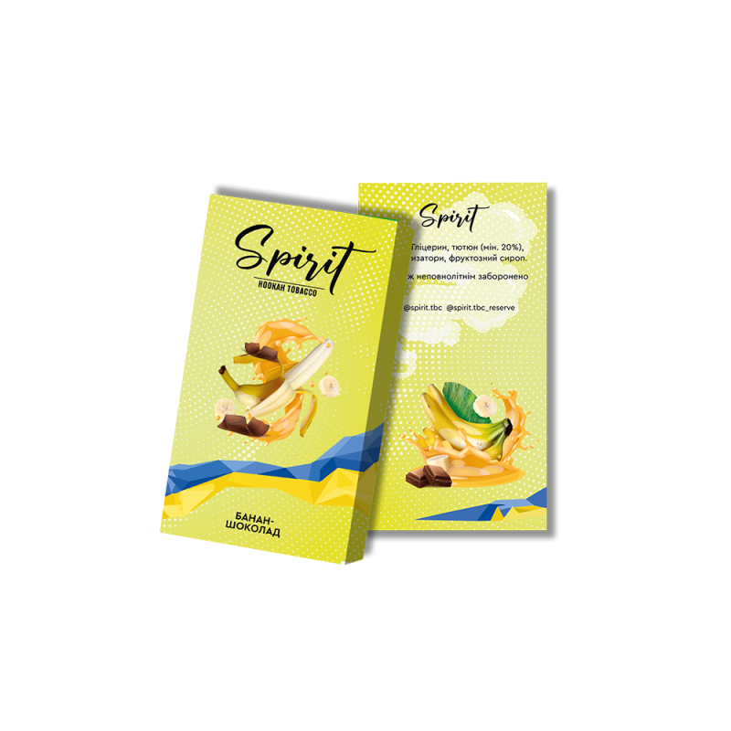 Найпопулярнішим серед поціновувачів димного відпочинку є Тютюн Spirit Банан Шоколад (50 г) від Spirit. Основа кальянної заправки — це тютюновий лист Virginia, Burley високої якості, а також натуральні ароматизатори, патока та чистий гліцерин. Завдяки цьому тютюн має насичений смак Банан, Шоколад, приємний аромат і здатний утворювати густий дим.