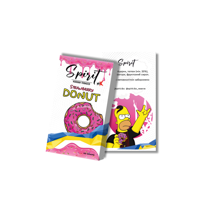 Найпопулярнішим серед поціновувачів димного відпочинку є Тютюн Spirit Mix Пончик Полуниця (Пончик Полуниця, 40 г) від Spirit. Основа кальянної заправки — це тютюновий лист Virginia, Burley високої якості, а також натуральні ароматизатори, патока та чистий гліцерин. Завдяки цьому тютюн має насичений смак Полуниця, Пиріг/Кондитерка, приємний аромат і здатний утворювати густий дим.