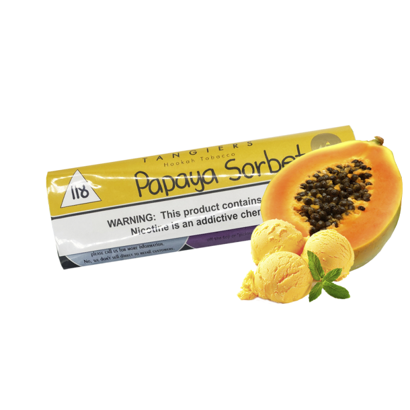 Найпопулярнішим серед поціновувачів димного відпочинку є Тютюн Tangiers Noir №118 Papaya Sorbet (Папайя Сорбет, 250 г) від Tangiers. Основа кальянної заправки — це тютюновий лист Virginia, Burley високої якості, а також натуральні ароматизатори, патока та чистий гліцерин. Завдяки цьому тютюн має насичений смак Морозиво, Папайя, приємний аромат і здатний утворювати густий дим.