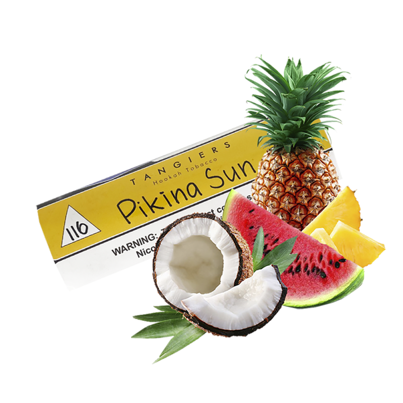 Найпопулярнішим серед поціновувачів димного відпочинку є Тютюн Tangiers Noir №116 Pikina sun (Пікіна сан, 250 г) від Tangiers. Основа кальянної заправки — це тютюновий лист Virginia, Burley високої якості, а також натуральні ароматизатори, патока та чистий гліцерин. Завдяки цьому тютюн має насичений смак Ананас, Кавун, Кокос, приємний аромат і здатний утворювати густий дим.