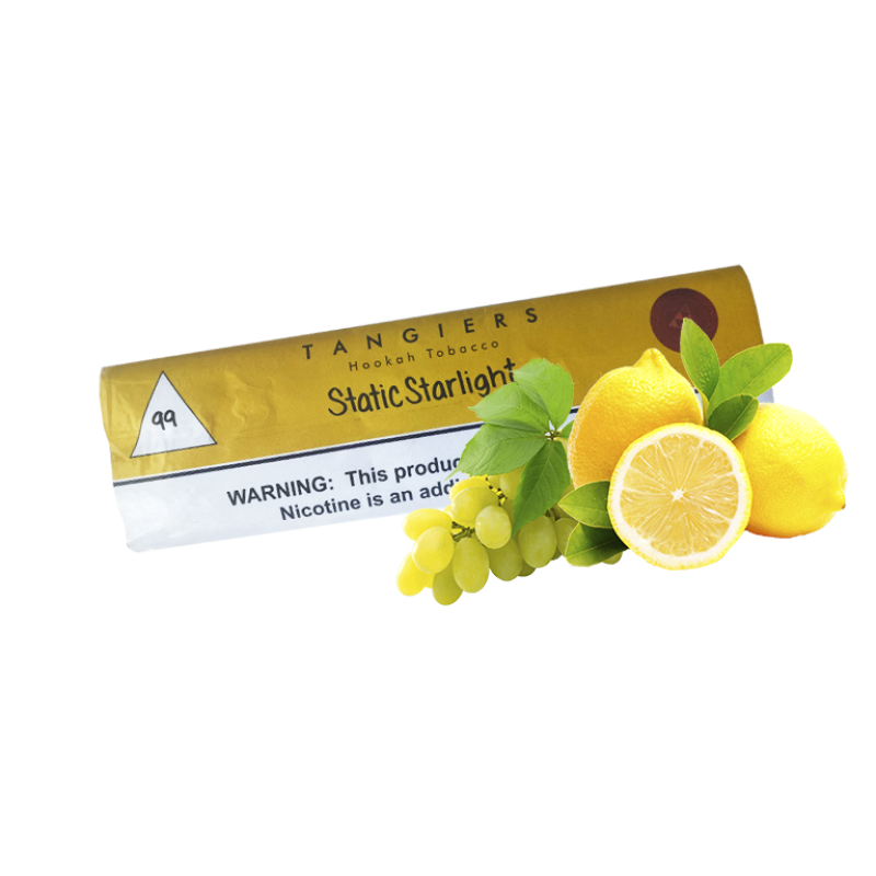 Найпопулярнішим серед поціновувачів димного відпочинку є Тютюн Tangiers Noir №99 Static Starlight (Статик Старлайт, 100 г) від Tangiers. Основа кальянної заправки — це тютюновий лист Virginia, Burley високої якості, а також натуральні ароматизатори, патока та чистий гліцерин. Завдяки цьому тютюн має насичений смак Виноград, Лимон, приємний аромат і здатний утворювати густий дим.