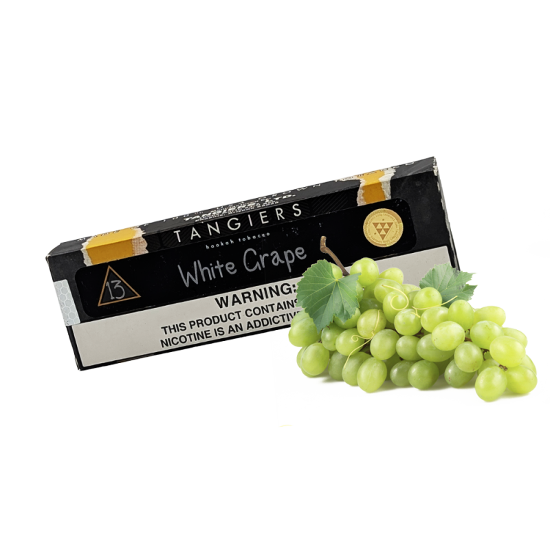 Найпопулярнішим серед поціновувачів димного відпочинку є Тютюн Tangiers Noir №13 White Grape (Білий Виноград, 100 г) Чорна упаковка від Tangiers. Основа кальянної заправки — це тютюновий лист Virginia, Burley високої якості, а також натуральні ароматизатори, патока та чистий гліцерин. Завдяки цьому тютюн має насичений смак Виноград, приємний аромат і здатний утворювати густий дим.